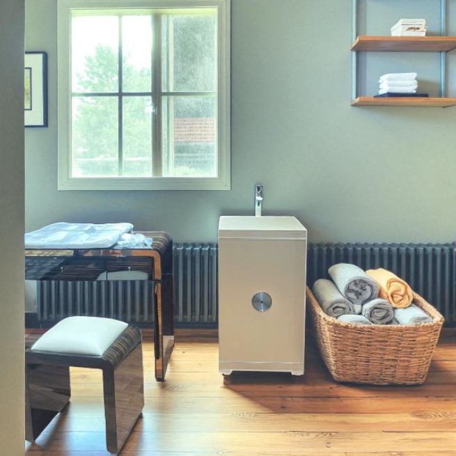 - Hai màu sang trọng: xanh xám và vàng đồng phù hợp nhiều không gian.